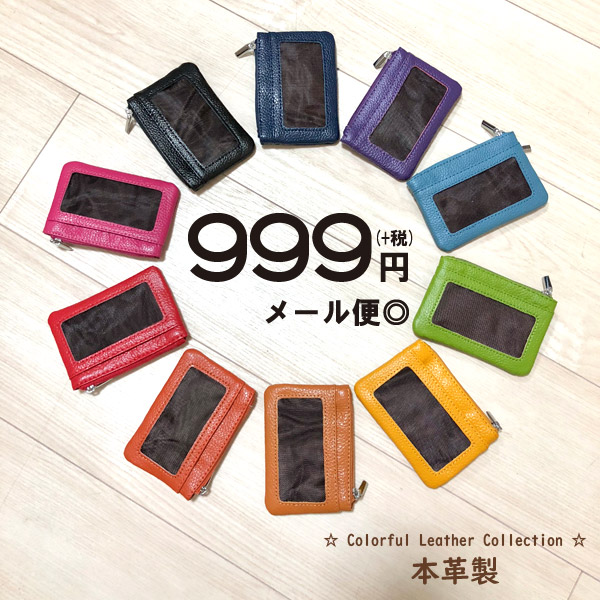 全10色から選べる☆カラフルなリアルレザーが魅力的な♪コンパクトカードケース。