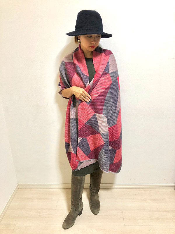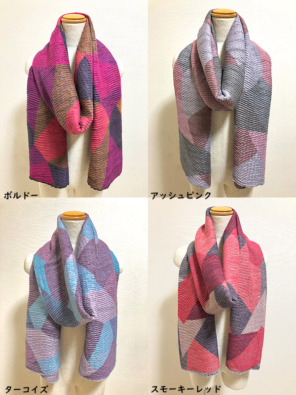 巻きやすく、まとまり感があるプリーツ素材。独特の伸縮性で、暖かさもお墨つき。くたっと優しい肌触りがクセになる。こっくりとしたオータムカラーが交差するプリントデザインは、トーンダウンしがちな秋冬ルックを底上げしてくれます。