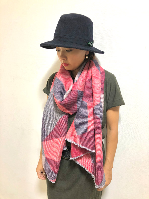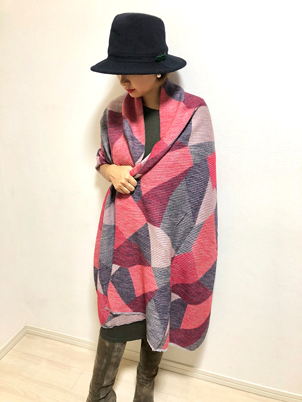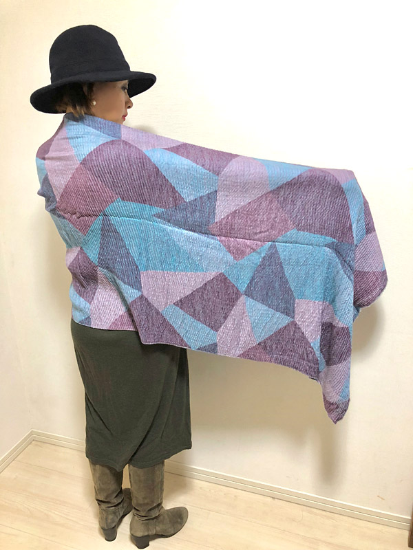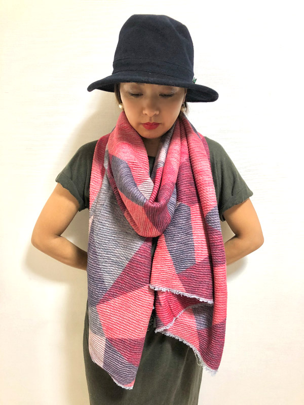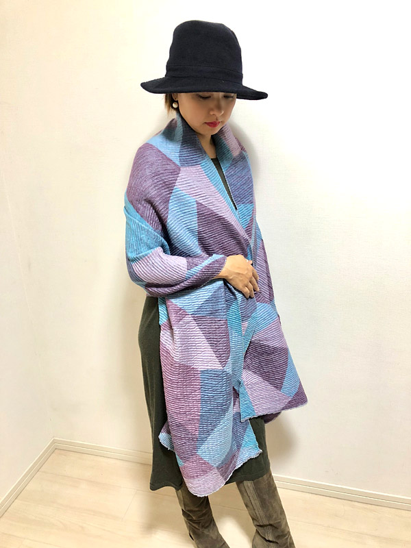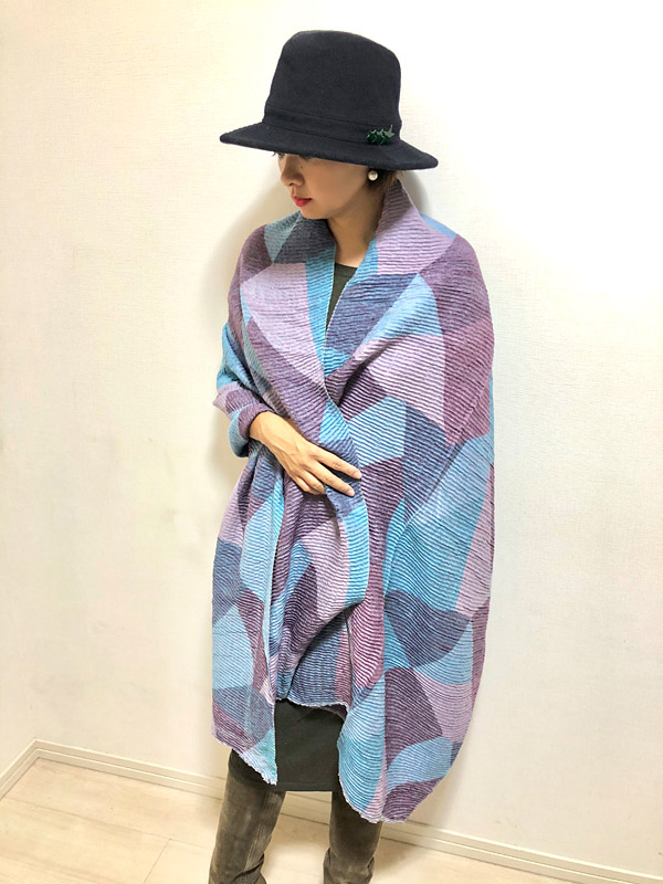 プリーツの風合いと、くったり柔らかな素材が魅力の大判ストール。