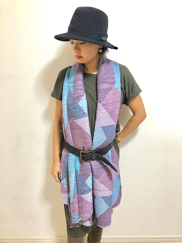 プリーツの風合いと、くったり柔らかな素材が魅力の大判ストール