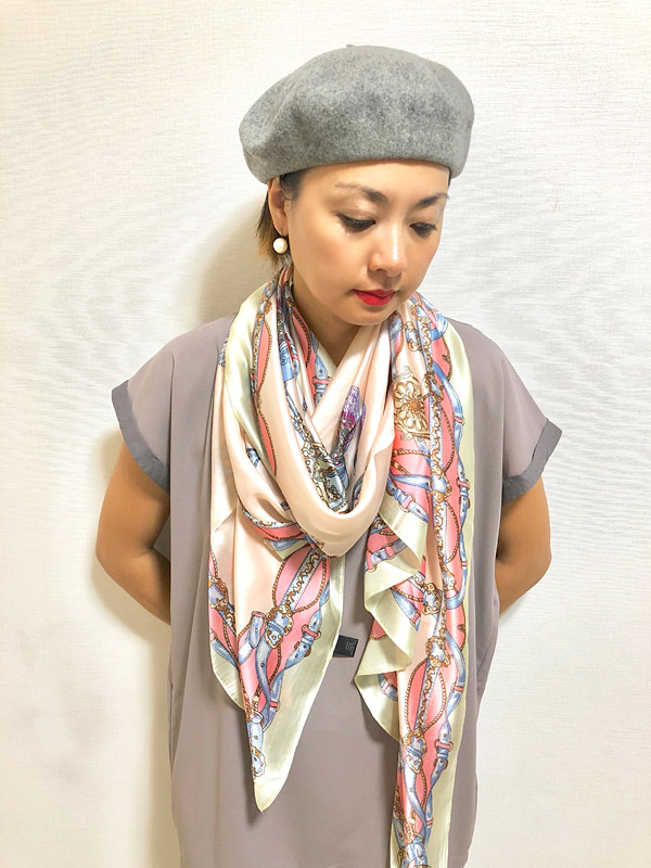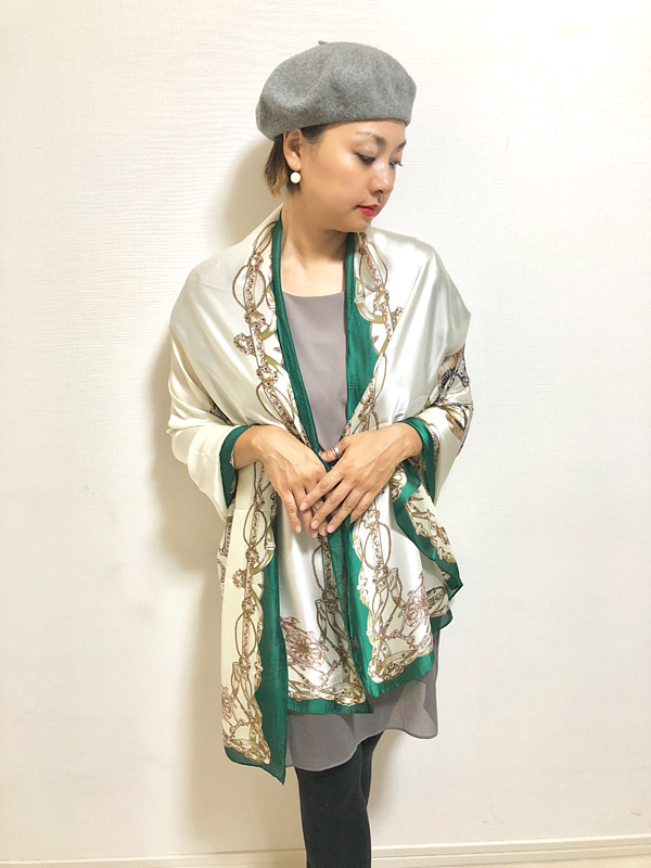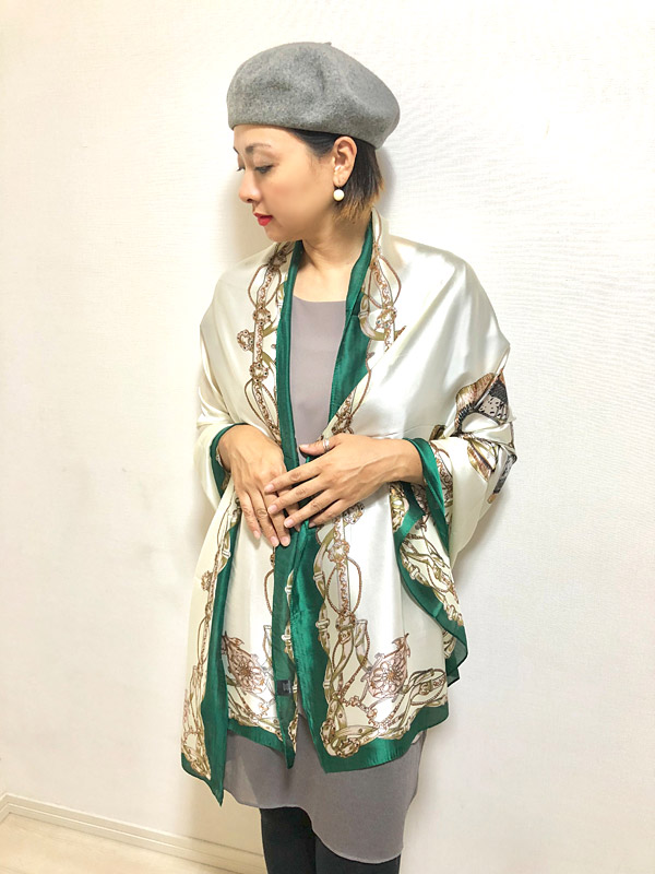 リュクスな印象と品格を備えたシルキータッチ大判スカーフ